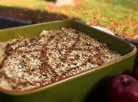 Our old recipe had rolled oats in apple crumble recipe no oats. Melt the brown sugar, honey and butter together in a large pan.
